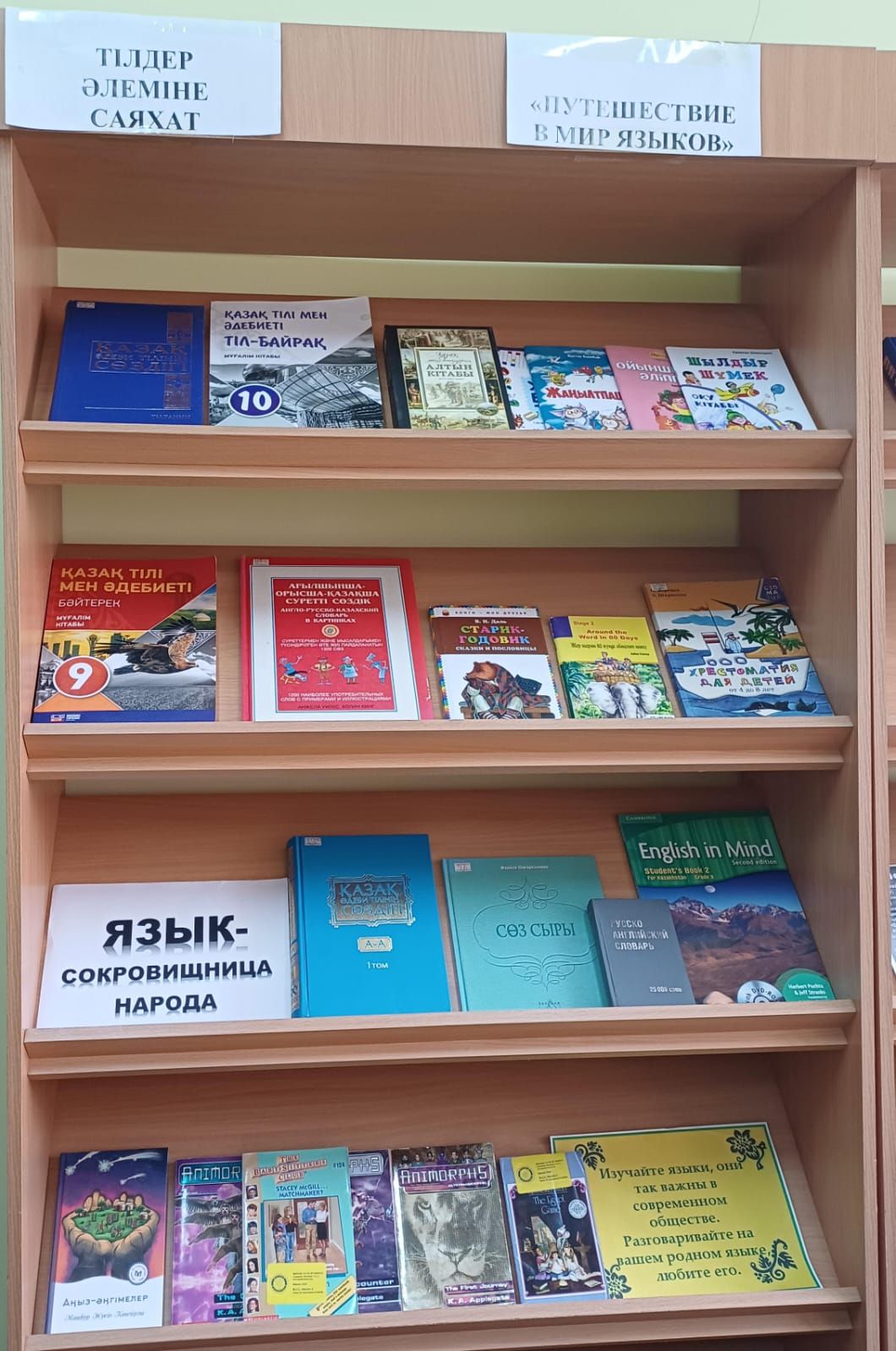 Постановлением Правительства РК 5 сентября определено днем языков. Именно в этот день родился Ахмет Байтурсынов. Праздник ежегодно отмечается в день рождения основоположника казахской филологии ученого-лингвиста Ахмета Байтурсынова. В библиотеке школы №3 города Тайынша ко Дню языков были организованы книжные выставки « Тілдер әлеміне саяхат », «Путешествие в мир языков». Цель выставки: развитие и распространение государственного языка, воспитание у обучающихся интереса к языку, взаимопонимания, развитие творческих способностей и познавательных интересов.