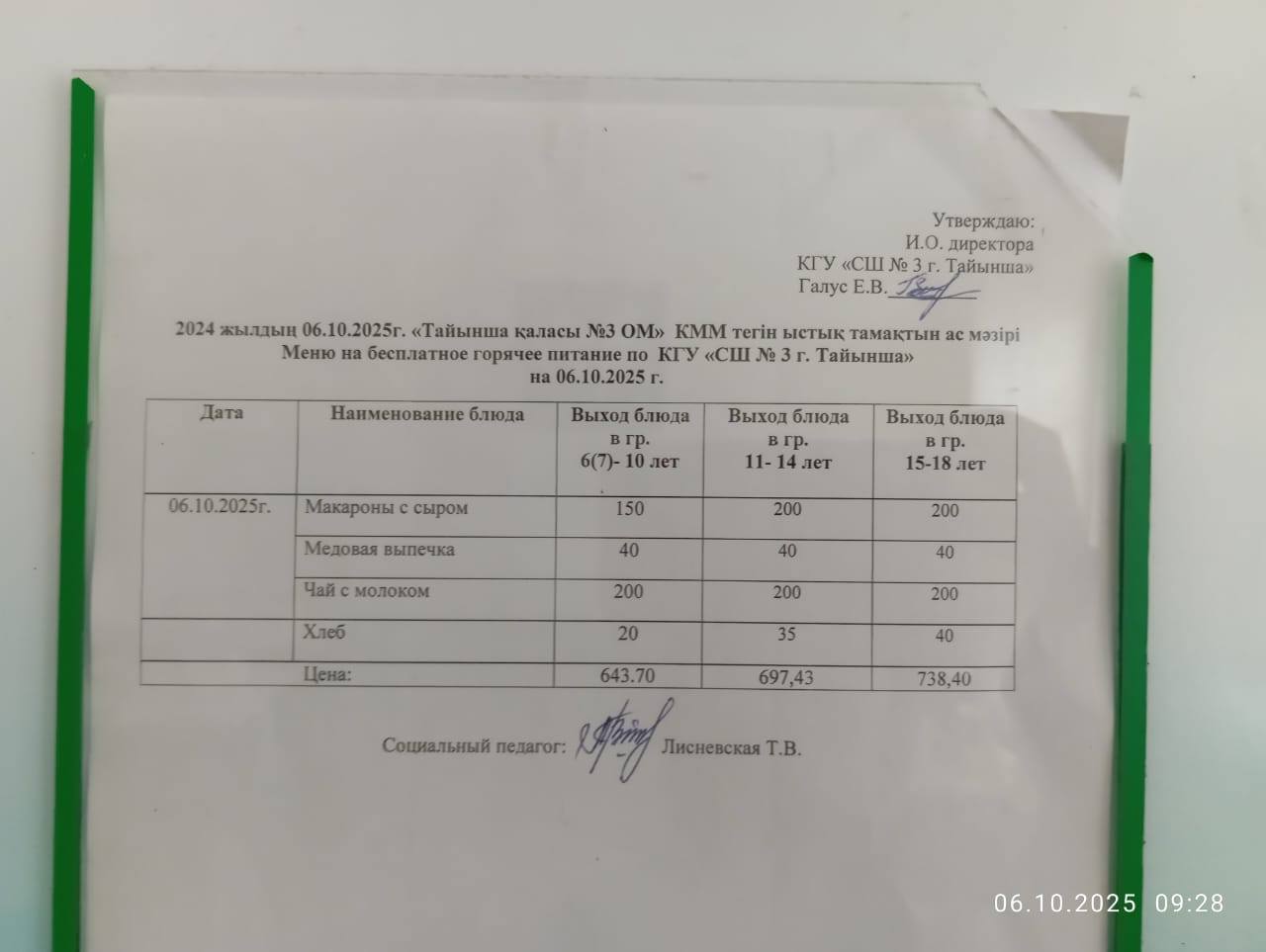 “Жалпы білім беру” — «Всеобуч» Автор admin Чтение 1 мин Число просмотров 6 Опубликовано 06/10/2025 2025 жылдың 06 қазанына арналған “Жалпы білім беру” қорынан тегін ыстық тамақ мәзірі. Меню бесплатного горячего питания из фонда «Всеобуч» на 06.10.2025 г.
