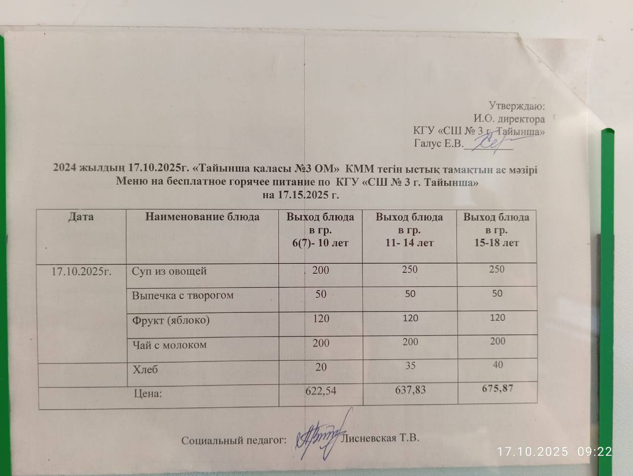 “Жалпы білім беру” — «Всеобуч» Автор admin Чтение 1 мин Число просмотров 2 Опубликовано 17/10/2025 2025 жылдың 17 қазанына арналған “Жалпы білім беру” қорынан тегін ыстық тамақ мәзірі. Меню бесплатного горячего питания из фонда «Всеобуч» на 17.10.2025 г.