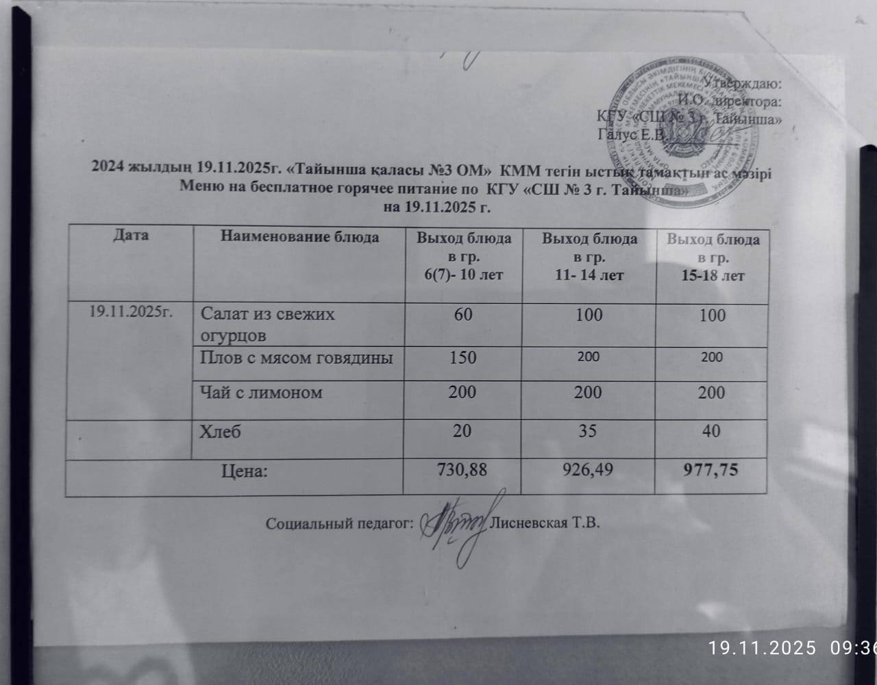 “Жалпы білім беру” — «Всеобуч» Автор admin Чтение 1 мин Число просмотров 4 Опубликовано 19/11/2025 2025 жылдың 19 қарашанына арналған “Жалпы білім беру” қорынан тегін ыстық тамақ мәзірі. Меню бесплатного горячего питания из фонда «Всеобуч» на 19.11.2025 г.