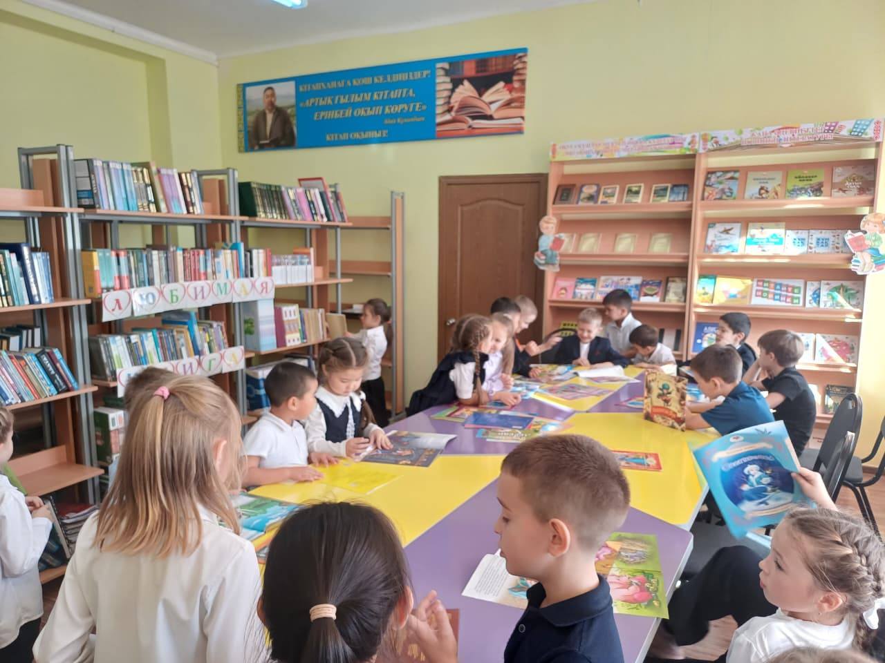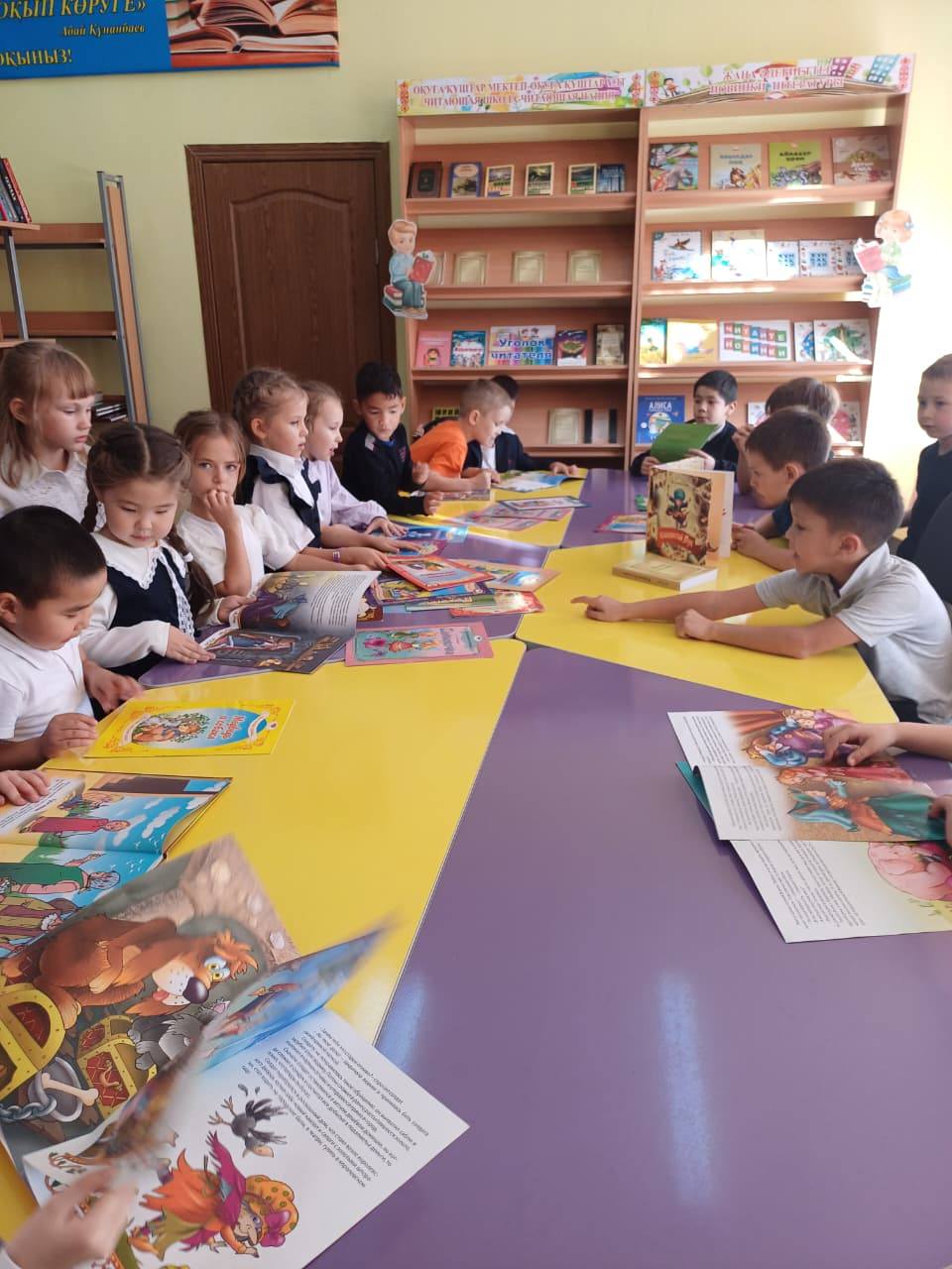 1-сыныпқа арналған «Кiтап патшайымында қонақта» атты кiтапхана iс-шарасы. Кітапханамен алғашқы танысу. 1А және 1 Б сыныбы кітапханамен алғаш танысуы. Оқушылар кітапқа деген қызығушылықтарын танытты.