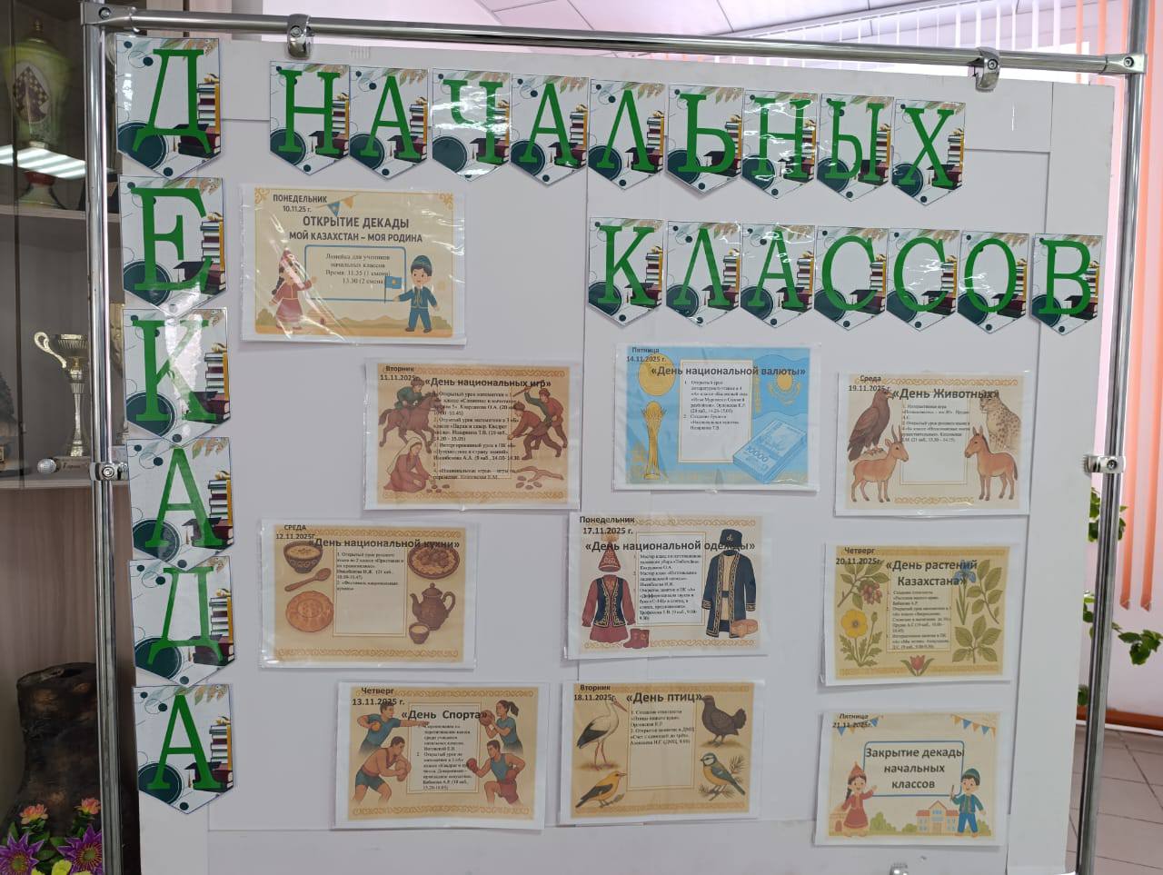 10 ноября 2025 года состоялось открытие декады начальных классов «Моя Родина — Казахстан». Учащиеся были кратко ознакомлены с планом мероприятий декады. Дети подготовили и прочитали стихотворения о Родине.
