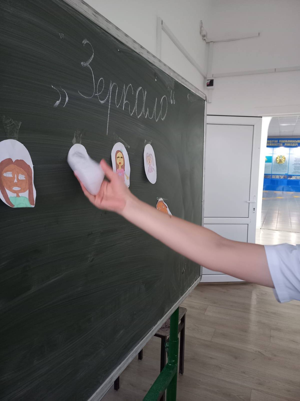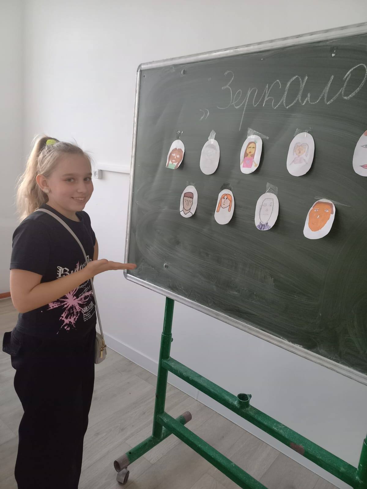 В КГУ Средняя школа №3 г.Тайынша с учащимися среднего звена проведена тренинговая работа на тему : » Знаю ли я себя?», «Зеркало». Ребятам было предложено нарисовать автопортрет, одноклассники угадывали, чьё изображение перед ними.