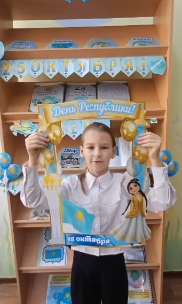 25 -октября ко Дню Республики Казахстан в библиотеке прошел конкурс «Меніні Отаным-Қазақстан». Подготовили к конкурсу Жибека Бектасовну и Жанну Санатовну. Учащиеся приняли активное участие. Библиотекарь вручила учащимся награды за участие в конкурсе