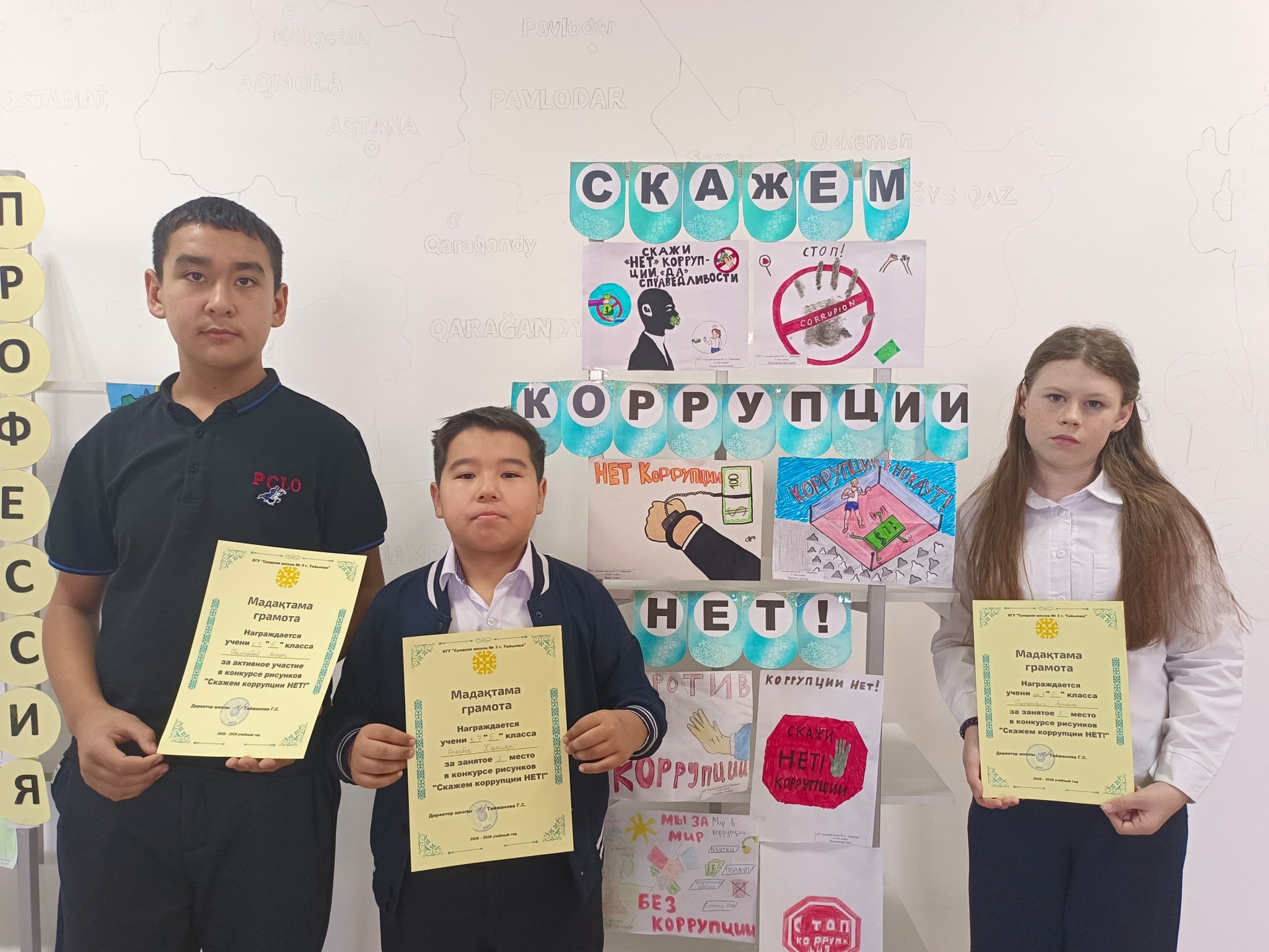 В КГУ » Средней школе №3 города Тайынша » прошёл школьный конкурс рисунков среди учащихся 5–8-х классов на важную и актуальную тему — «Скажем коррупции — НЕТ!»