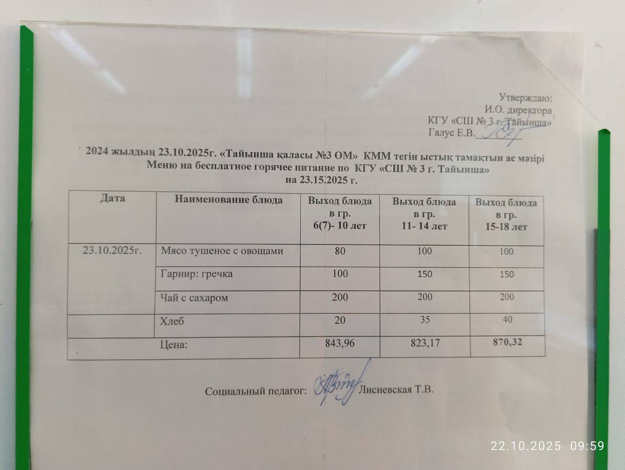 Тегін ыстық тамақ мәзірі -Меню бесплатного горячего питания Автор admin Чтение 1 мин Число просмотров 19 Опубликовано 22/10/2025 2025 жылдың 22 қазанына арналған “Жалпы білім беру” қорынан тегін ыстық тамақ мәзірі. Меню бесплатного горячего питания из фонда «Всеобуч» на 22.10.2025 г.
