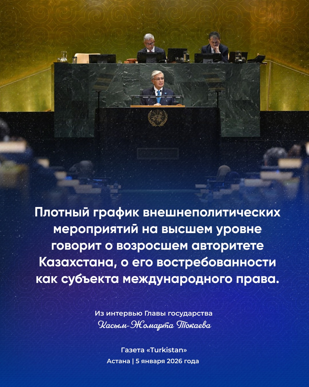 Президент Казахстана Касым-Жомарт Токаев в первые дни 2026 года дал большое интервью газете «Turkistan». Текст интервью опубликовала Акорда, передает NUR.KZ.