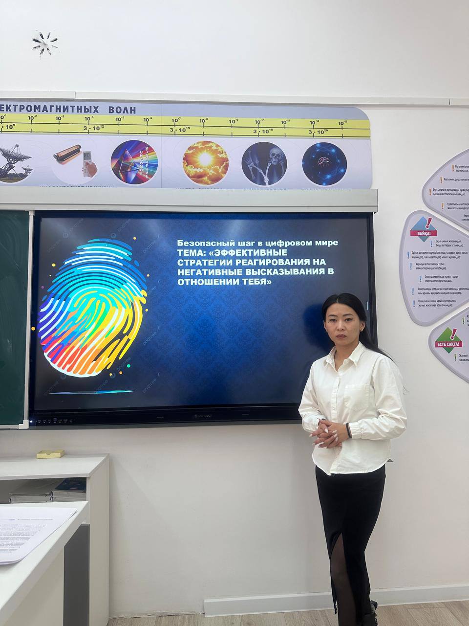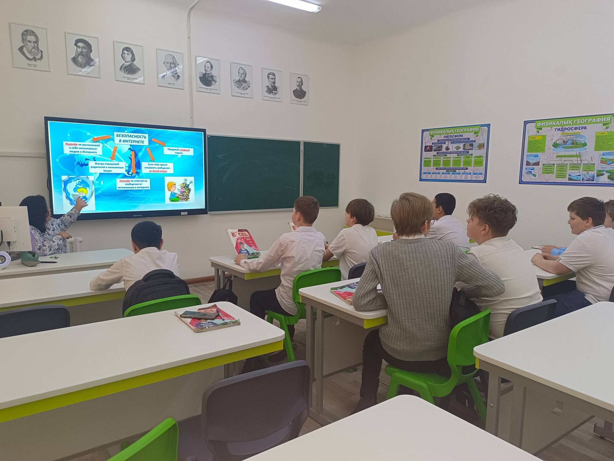 Іс-шара барысында оқушылар Интернет желісінде қауіпсіз әрекеттің негізгі ережелерімен танысты, онлайн-кеңістіктің ықтимал қауіптері және жеке ақпаратты қорғау тәсілдері туралы білді. Желідегі қарым-қатынас мәдениетіне, өз іс-әрекеттері үшін жауапкершілікке және қауіпті жағдайларды тану қабілетіне ерекше назар аударылды.