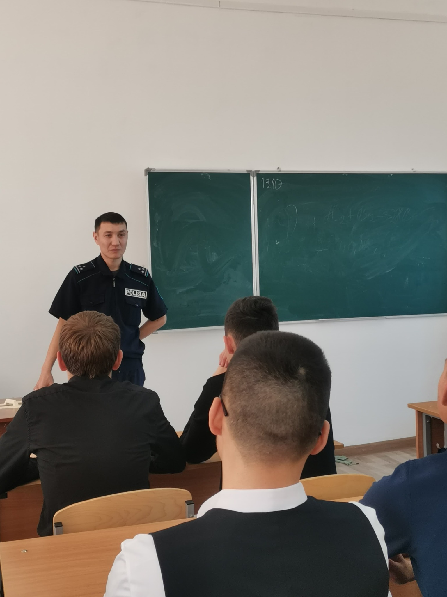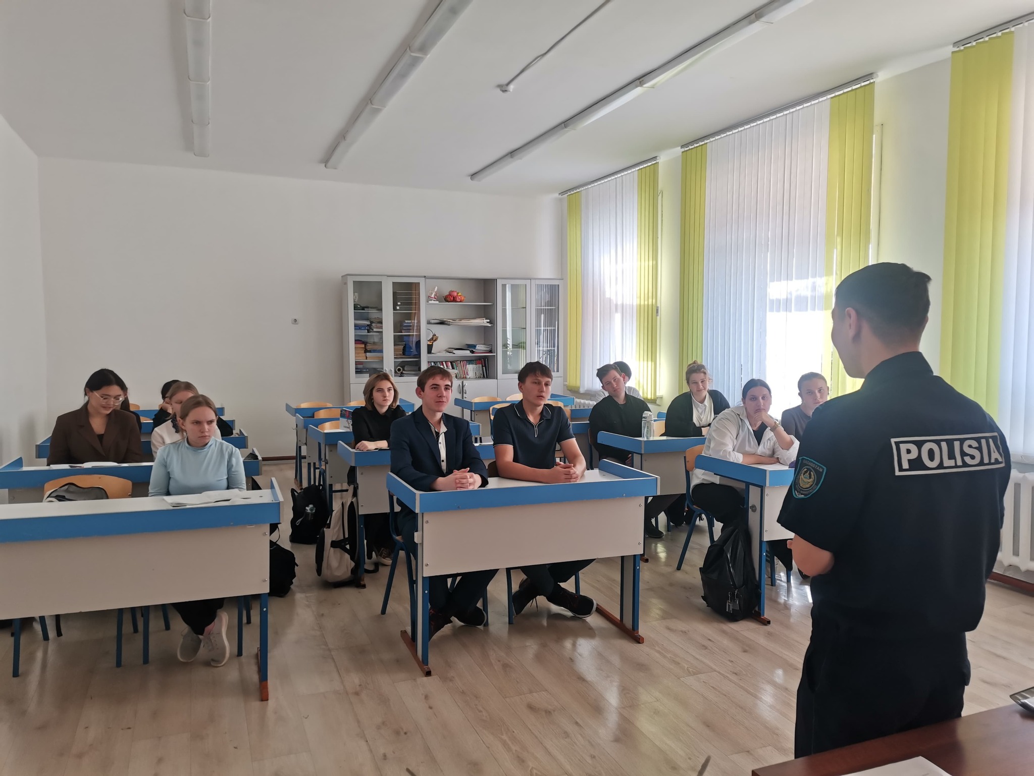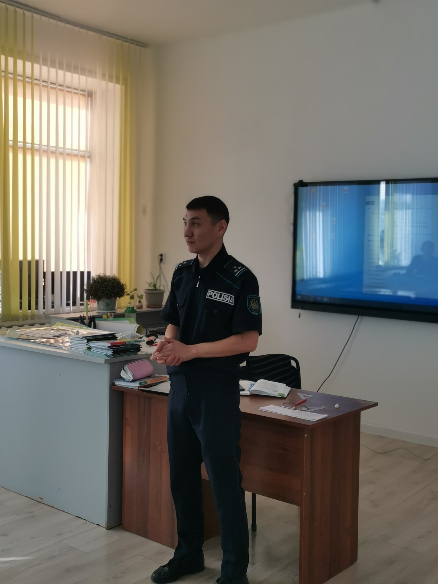 Әңгімелесуді Тайынша аудандық полиция бөлімінің кәмелетке толмағандар істері жөніндегі инспекторы полиция аға лейтенанты Тимур Васильевич Пацков жүргізді. Кездесуде әлеуметтік желілердің жасөспірімдерге әсеріне қатысты өзекті мәселелер қаралып, кибербуллинг пен басқа да желідегі қауіп-қатерлердің құқықтық салдары туралы түсініктеме берілді.