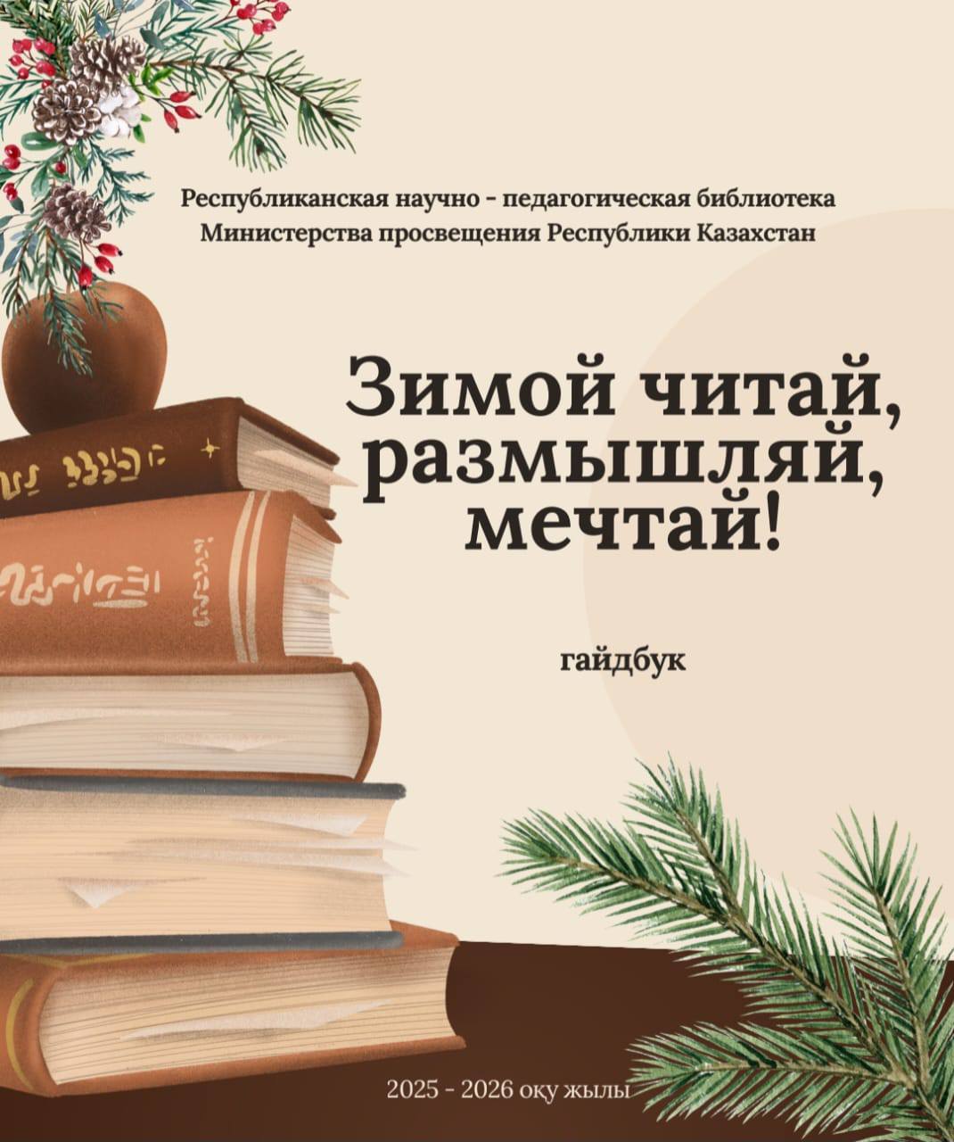 Республиканская научно-педагогическая библиотека Министерства просвещения Республики Казахстан (далее – РНПБ МП РК) предлагает гайдбук, содержащий перечни литературы, предназначенные для мероприятий, организуемых в школах нашего региона в период зимних каникул школьников, под темой «Читай зимой, размышляй, мечтай».