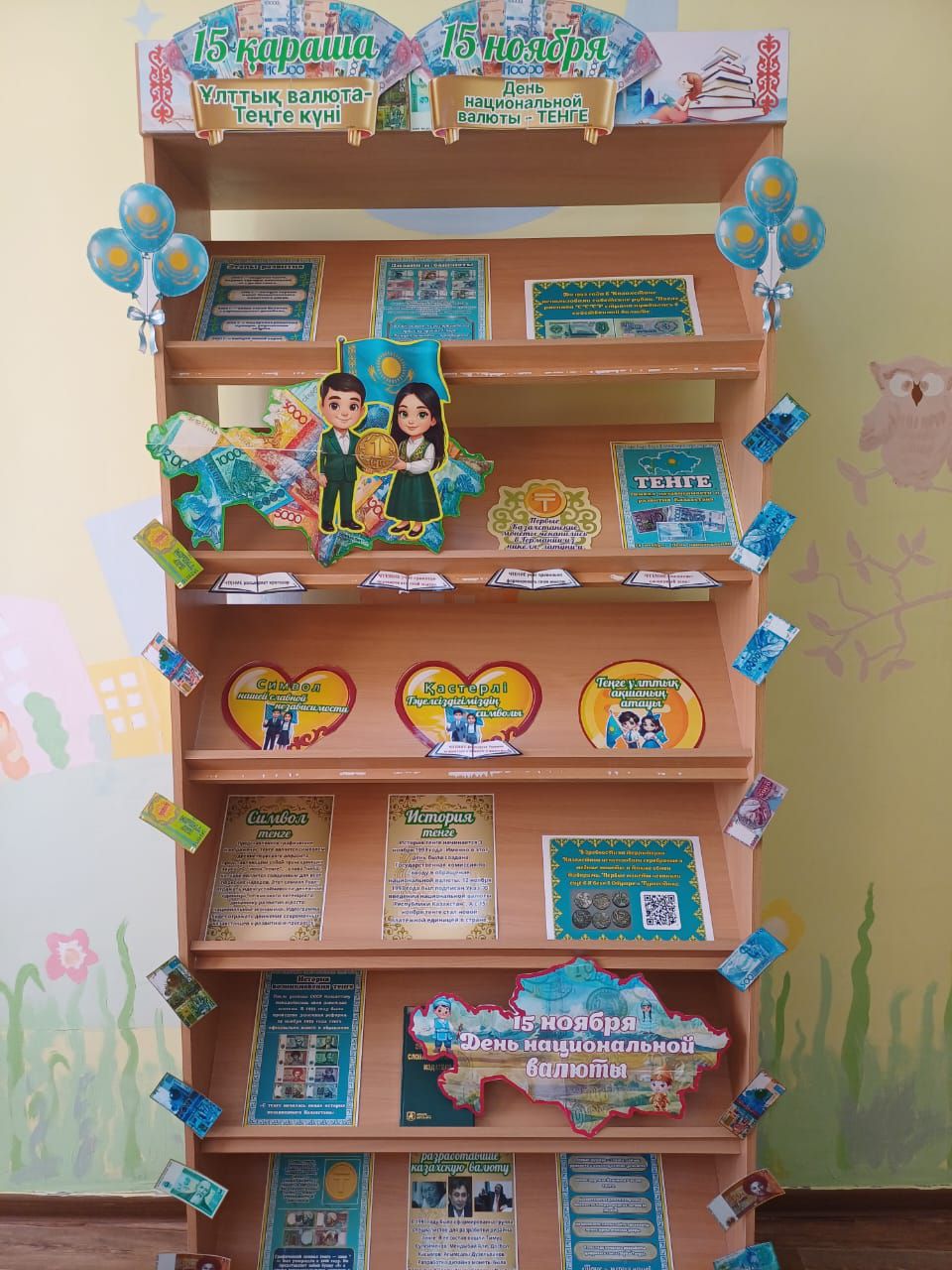 14- ноября ко Дню национальной валюты в школьной библиотеке была организована книжная выставка. На выставке были представлены старые валюты с историей происхождения тенге в качестве визуальных элементов. Эта дата отмечается с 1997 года. История тенге начинается с Закона РК «О введении национальной валюты Республики Казахстан», подписанного Президентом РК 12 ноября 1993 года. Через три дня, 15 ноября, в качестве инструмента для проведения новых торгов на территории страны вступил в действие тенге.