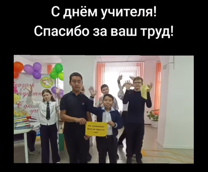 Учащиеся 7 «Б» класса КГУ «Средняя школа 3 города Тайынша» приняли участие в челлендже «Поздравь учителя». «Дорогие учителя, спасибо Вам за Ваш титанический труд, за бесценные знания, за Ваше терпение и мудрость! Пусть Ваша работа приносит Вам только удовлетворение, а ученики всегда ценят и помнят Ваш труд».