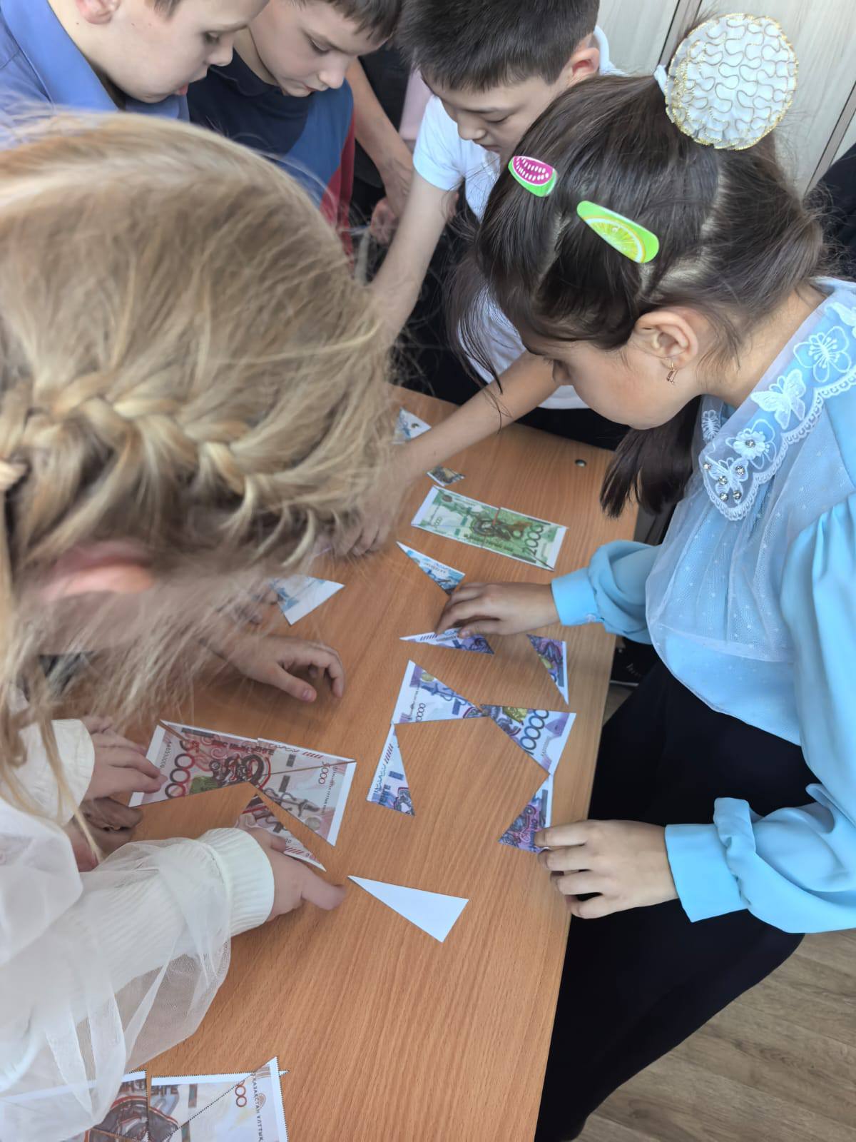 14 ноября Назаркина Т.В. провела презентацию буклета ко Дню национальной валюты. Учащихся познакомили с историей происхождения тенге, рассказали интересные факты о купюрах и монетах. Дети внимательно рассмотрели, как изменялись купюры тенге с течением времени. Занимательным моментом было складывание пазлов.